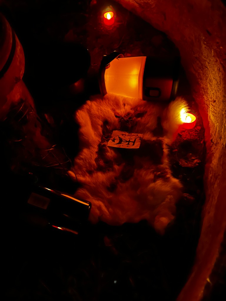 A white tallow candle – lit to awaken the dreaming dead,