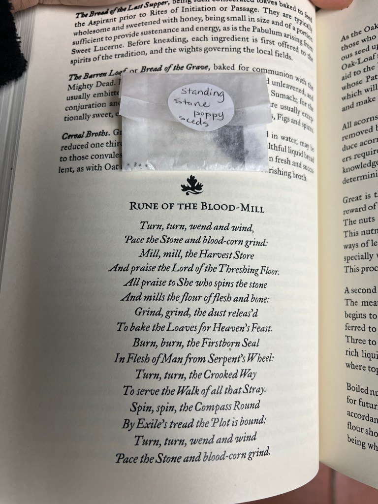 So into the kitchen I went to rustle up some homemade bread (sans salt of course) with a little help from Viridarium Umbris and some poppy seeds gathered at a Scottish standing stone by a beloved friend. Highly recommend trying out that bread recipe for yourself by the way, it’s very tasty.