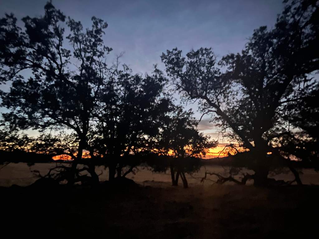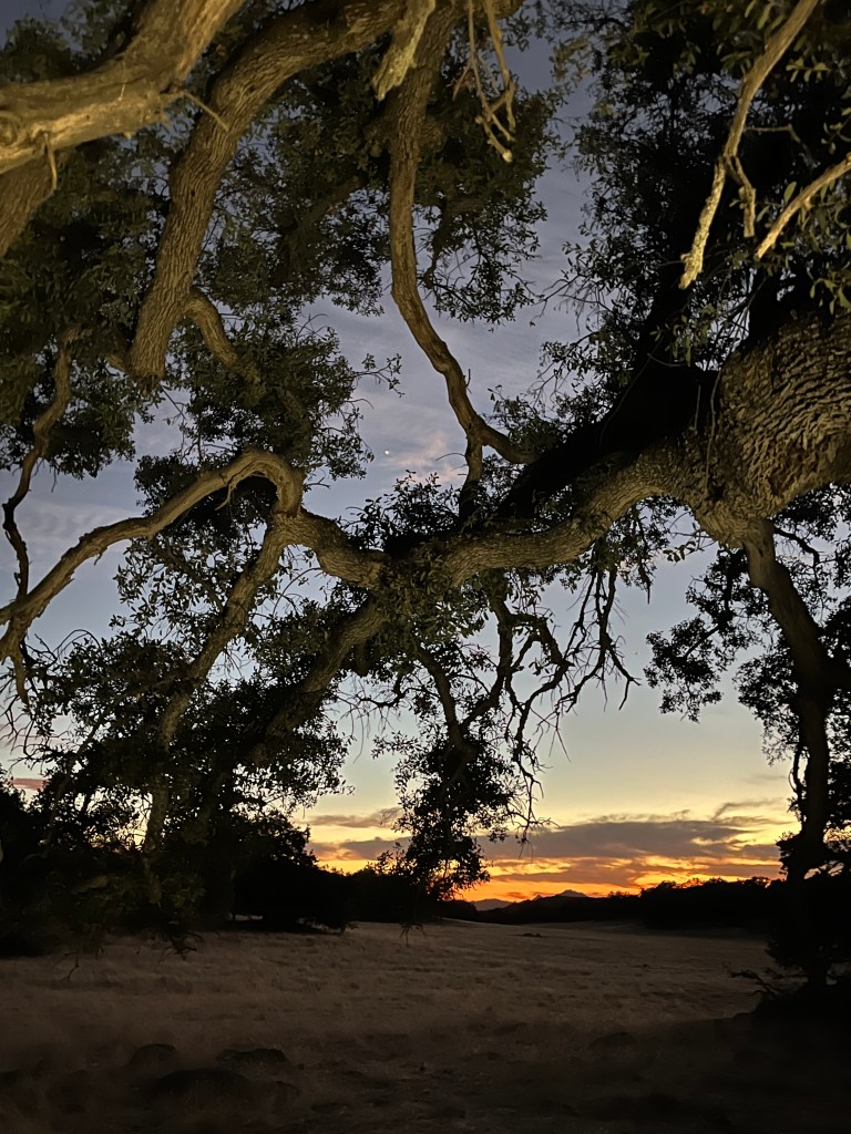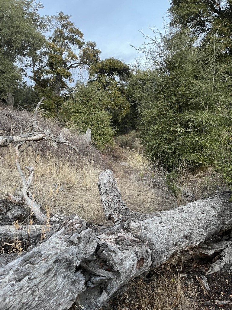The hike to the meadows was uneventful if notably quieter than usual. Before heading in we headed off the trail into a thicket of trees choked with poison oak (the hedge guardian of these woods) and laid the Cross-Seal of Arrival from Viridarium Umbris.