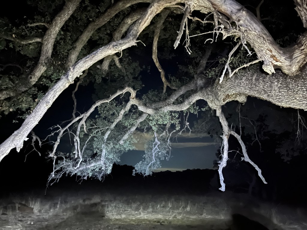 After some searching we decided to set up our ritual at the foot of a massive oak standing alone in the meadows surrounded by a small copse of trees. Near enough to the haunted meadow to make it clear who we were talking to but far enough away to avoid offense.